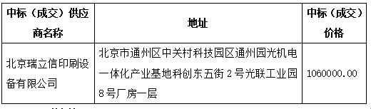 湖南省印刷物資有限責任公司平版印刷機集中供水設備采購中標(成交)結果公告