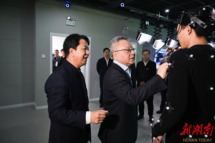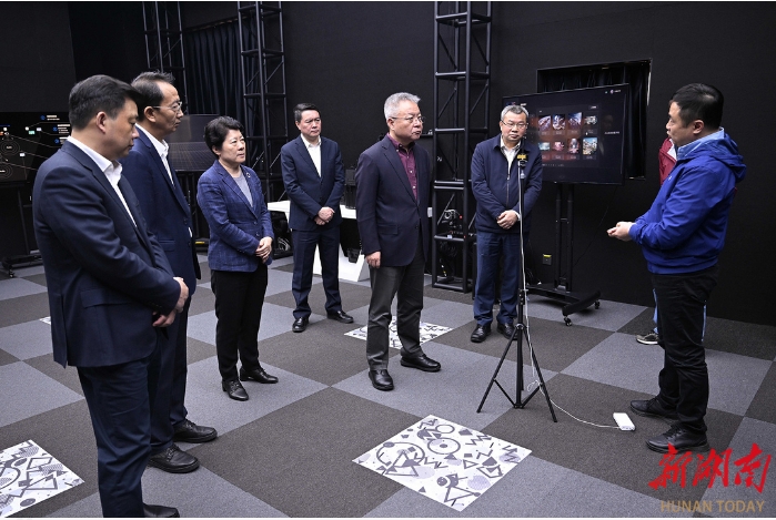 走進馬欄山視頻文創產業園,沈曉明考察了樂田智作9號棚、馬欄山視頻超算中心、聚恒科技園、5G高新視頻多場景應用國家廣電總局重點實驗室、萬興科技大模型研發中心,詳細了解節目生產全流程、軟硬件研發、超算和大模型賦能音視頻產業發展、動漫產業集聚和創新平臺研發應用等情況,并在明和光電察看了智能化裝備,了解舞臺機械、藝術燈光等文旅裝備創新研發情況。他指出,要充分發揮頭部企業帶動作用,招引更多文化和科技融合的上下游企業和資源要素集聚湖南,進一步提高關鍵領域自主創新能力,實現國產化替代,并提供一站式服務解決方案,打造永不落幕的音視頻裝備展。