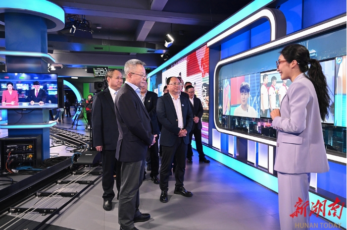 沈曉明來到長沙學院、湖南大眾傳媒職業技術學院、湖南藝術職業學院,實地察看了全媒體中心實驗室、XR演播區、湖南廣播電視臺節目生產基地、全媒體實訓室等,詳細了解學院發展、專業布局、校企合作、以新技術助推人才培養與文化產業深度融合等情況,指出要深化產教融合,推動校企合作向資源集約型發展,鼓勵更多行業專業技術人才進校授課,打造特色鮮明的應用型高校。